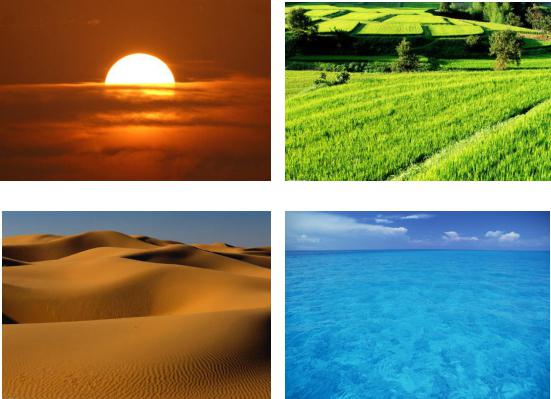 太陽、田野、沙漠、海洋