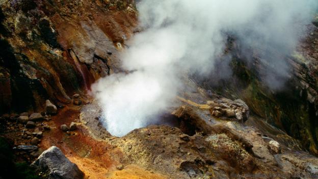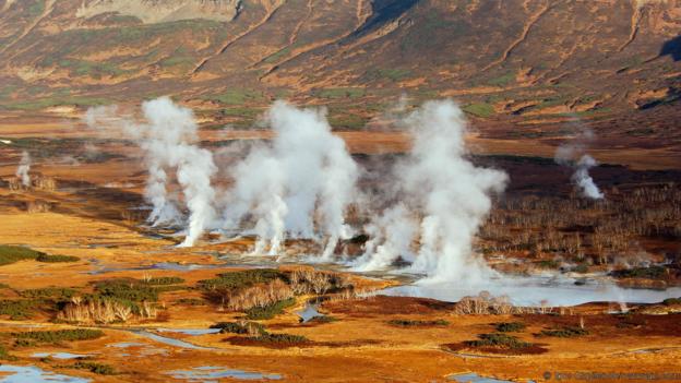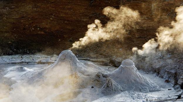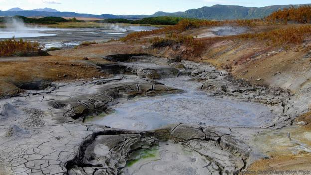 在遙遠的東西伯利亞,數(shù)百座活火山聳立在巖石之上,其間點綴著數(shù)以千計的熱泉。俄羅斯人稱這里為“正在形成的土地”,因為這里的火山總是在融化巖石,形成新的地貌??安旒影雿u上的“新土地”堪稱地球上最荒涼的地方,但這并非意味著沒有任何生命。在熱氣彌漫、冒著氣泡的沸水中,依然存在著許多奇怪的微生物,有些甚至能在130度左右的水中生存。