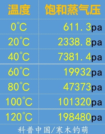 反過來說也成立,即不同溫度下,水沸騰時的壓強是不同的,這個壓強就是飽和蒸氣壓。