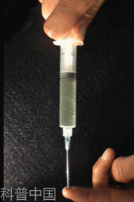 堵住注射試管的底部,并向上拔活塞時,管內(nèi)氣壓降低,并產(chǎn)生氣泡。