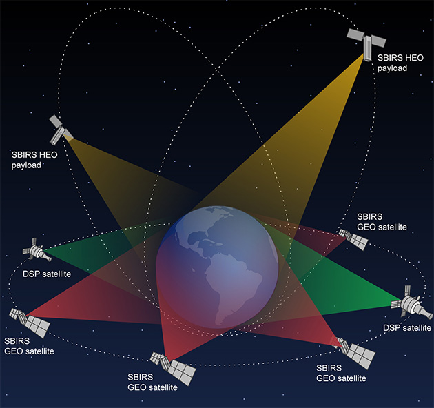 美軍公布的天基洲際導(dǎo)彈預(yù)警系統(tǒng)工作狀態(tài),實(shí)時(shí)監(jiān)控地球每一個(gè)角落(圖片來源:spacenews)?