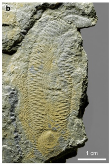 好了,言歸正傳,這個(gè)長形黎鐮蟲是由中國科學(xué)院南京地質(zhì)古生物研究所研究員趙方臣與英國杜倫大學(xué)Martin Smith博士等人在中國澄江動物群中發(fā)現(xiàn)的一種新的寒武紀(jì)奇異生物。