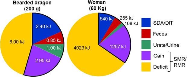 如果3天只吃芹菜,松獅蜥會(huì)損失6千焦熱量,而女性人類(lèi)會(huì)損失4023千焦熱量(圖片來(lái)源:參考文獻(xiàn)1)????