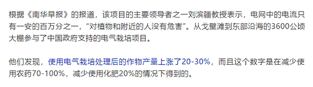 圖片來源:截圖自《中國科學家在全國用高壓電種菜30年,產量驚人,這是什么操作?》????