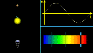 由于行星自身不發(fā)光,所以我們很難直接在其他恒星周圍找到可能存在的系外行星,這時(shí)候牛頓的萬(wàn)有引力定律又可以來(lái)幫忙了。行星自身的質(zhì)量使得行星和恒星圍繞著他們共同的質(zhì)量中心在轉(zhuǎn)動(dòng),那么在地球上的望遠(yuǎn)鏡,就有可能看到行星引力對(duì)于恒星的影響,行星讓恒星在天空中輕輕“搖擺”。在視線方向上,恒星受行星引力作用,時(shí)而遠(yuǎn)離時(shí)而靠近我們,這種細(xì)微的搖擺反應(yīng)在光譜上,就會(huì)造成恒星光譜整體不斷的紅移和藍(lán)移。我們稱這種探測(cè)系外行星的方法為視向速度法。通過(guò)這一方法可以估算系外行星的質(zhì)量這一重要參數(shù)。?