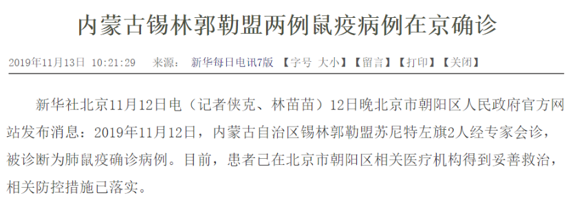 事情發(fā)生以后,北京的市民們有些忐忑不安:“北京發(fā)生鼠疫了?聽說通過空氣傳播?死亡率特別高?”群眾恐慌不無道理,但其實這種擔心是不必要的。截至11月12日,北京市已經(jīng)發(fā)布了公告:
