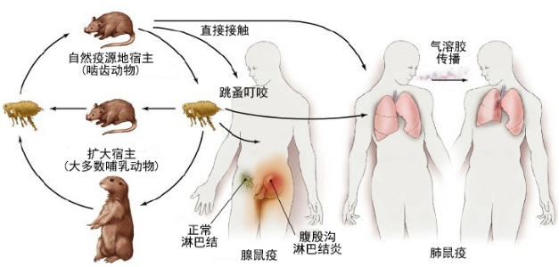 鼠疫的傳染源為鼠類和其他嚙齒類動物,鼠、蚤叮咬是主要的傳播途徑。除此之外,感染病人的呼吸道分泌物、血液等可引發(fā)疾病的空氣傳播和接觸傳播。
