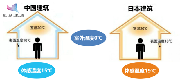 中國建筑和日本建筑保溫效果對比圖(圖片來源:作者自制)?