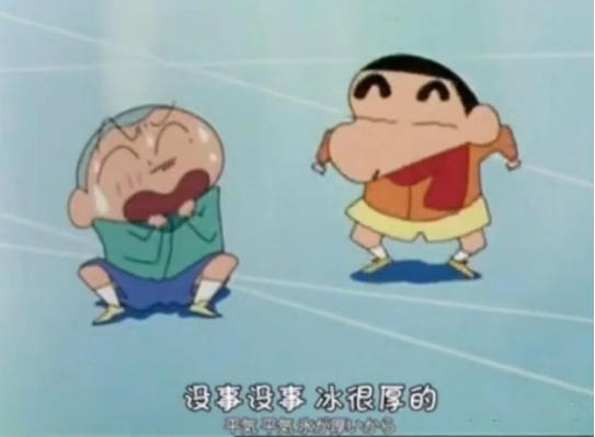 小新和正南光腿踩冰(圖片來源:《蠟筆小新》視頻截圖)?