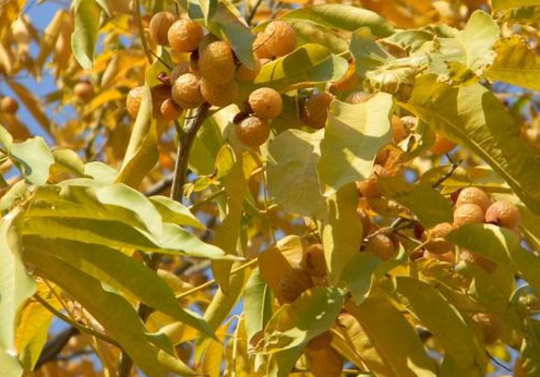 無患子(Sapindus mukorossi Gaertn.):黃色葉樹種。別名:木患子、油患子、苦患樹、鬼見愁等。落葉喬木,單回羽狀復(fù)葉,小葉對生;花序頂生,核果球形,成熟時為橙黃色,后變黑褐色。喜光耐寒,對二氧化硫抗性較強,常作為工業(yè)城市生態(tài)綠化的首選樹種。