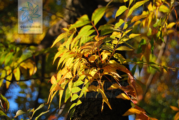 黃連木(Pistacia chinensis Bunge):秋色葉樹種。落葉喬木,偶數(shù)羽狀復(fù)葉互生,小葉5~7對,披針形或卵狀披針形,秋季葉片可變?yōu)槌赛S或鮮紅色,同時核果成熟呈紫紅色或橙黃色,能一直保持到深秋;宜作庭蔭樹及山地風(fēng)景樹種。