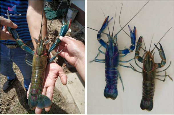 左圖為澳洲實地考察的紅螯螯蝦,右圖為相同生長環(huán)境下紅螯螯蝦兩種體色的對比,其顏色與性別無關(guān)。(圖片來源:作者提供)?