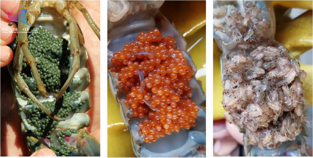 紅螯螯蝦抱卵孵化的不同階段(圖片來源:作者提供)?