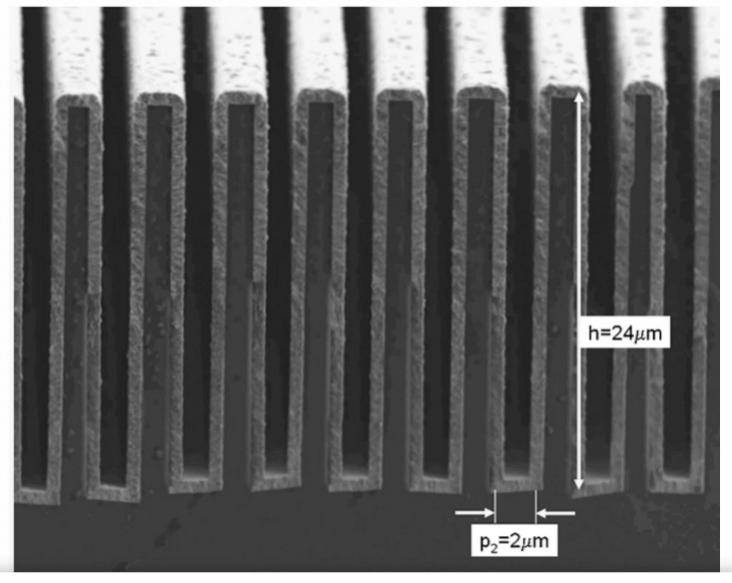 一個衍射光柵的局部放大,可以看到明顯的柵欄狀結(jié)構(gòu)。(圖片來源:參考文獻(xiàn)1)