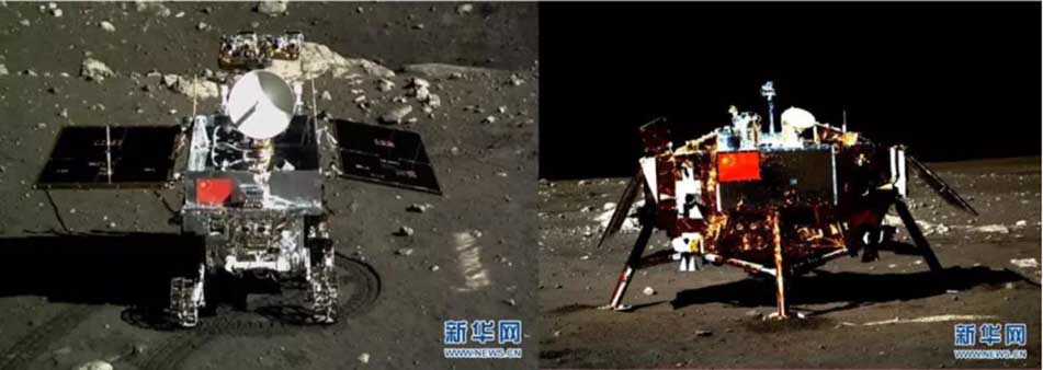 2013年12月15日,嫦娥三號著陸器的地形地貌相機和月球車玉兔的全景相機完成兩器互拍 |?中國探月工程