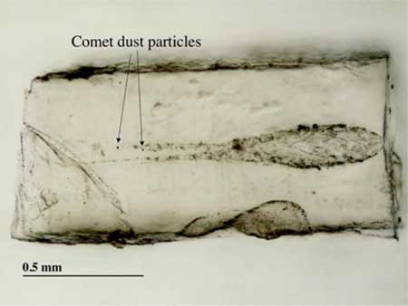 星塵號收集樣品的氣凝膠切片中采集到的彗星塵埃(箭頭處)| NASA