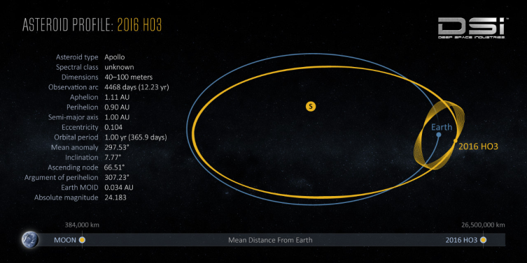 2016 HO3是一顆地球的準(zhǔn)衛(wèi)星,不過它距離地球的平均距離比地月距離遠得多(始終距地球在地月距離的38-100倍之間),并沒有真的被地球的引力所俘獲成為真正的衛(wèi)星 | DSI