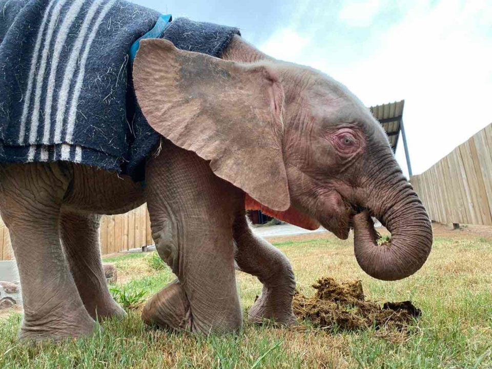 三個月大的非洲象在吃新鮮糞便。圖片來源:HERD Elephant Orphanage