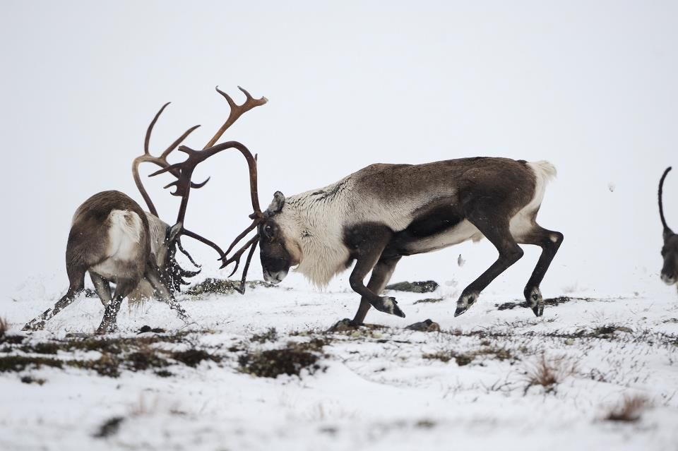 但力量與地位可不是說說就行,為了奪得鹿群中的統(tǒng)治地位,雄性馴鹿往往會(huì)大打出手。小伙子們干起架來,那叫一個(gè)狠,鉚足了勁往對(duì)手腦門上頂。有時(shí)打得太過兇殘,雙方把角死死糾纏在了一起,最后一起被餓死。