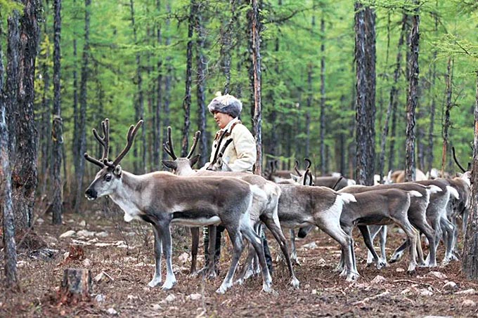 鄂溫克人和馴鹿一同生活