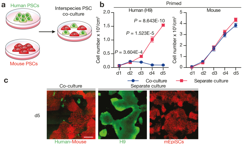 科學(xué)家們首先嘗試了大-小鼠(嚙齒類)、人-猴(靈長類)和牛等不同物種的多能性干細(xì)胞進(jìn)行共培養(yǎng),他們以每平方厘米存活的細(xì)胞數(shù)量為指標(biāo),判斷細(xì)胞凋亡程度。
