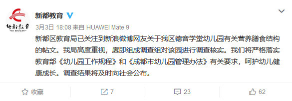 圖片來(lái)源:新都區(qū)教育局微博回應(yīng)截圖