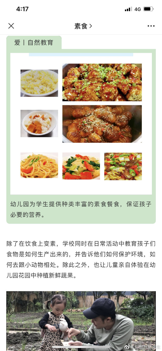 以事件中心這家成都的幼兒園為例,他們宣稱可以給孩子提供種類豐富的素食,保證孩子必要的營(yíng)養(yǎng),那我們就來(lái)看看他的食譜圖片里面有什么,可以發(fā)現(xiàn)只有蔬菜、米飯與豆制品,連牛奶、蛋類都沒(méi)有。
