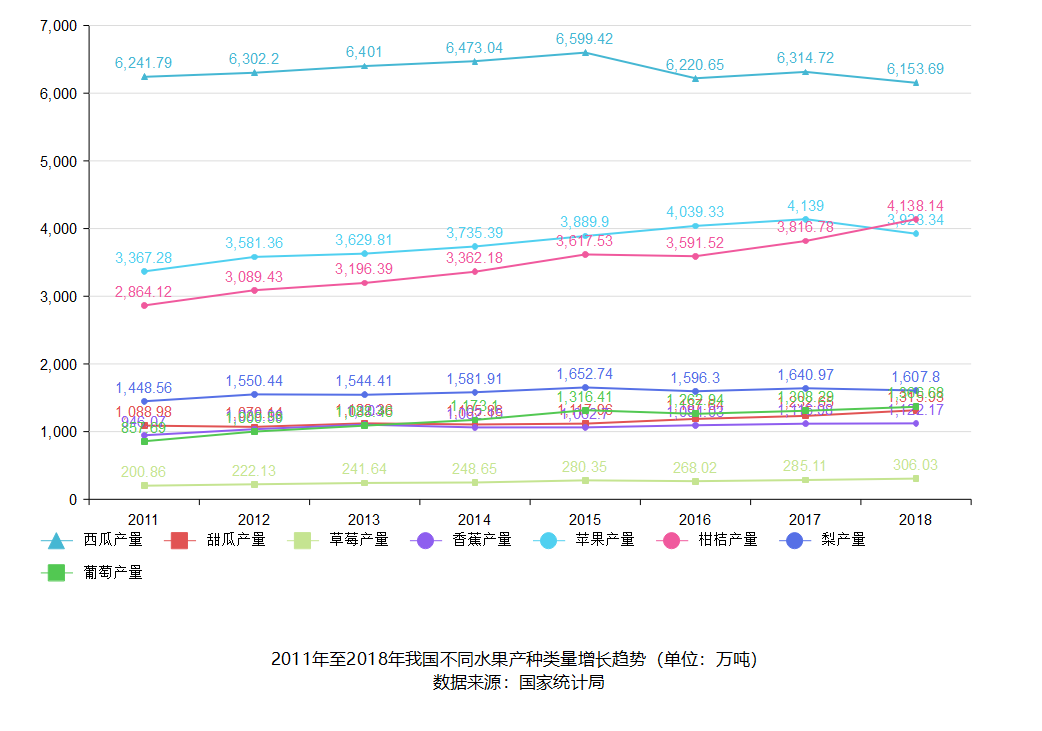 截至2018年,我國(guó)水果產(chǎn)量仍每年穩(wěn)步提升,其中可以看到,園林水果增長(zhǎng)勢(shì)頭較猛,那什么是園林類水果呢?