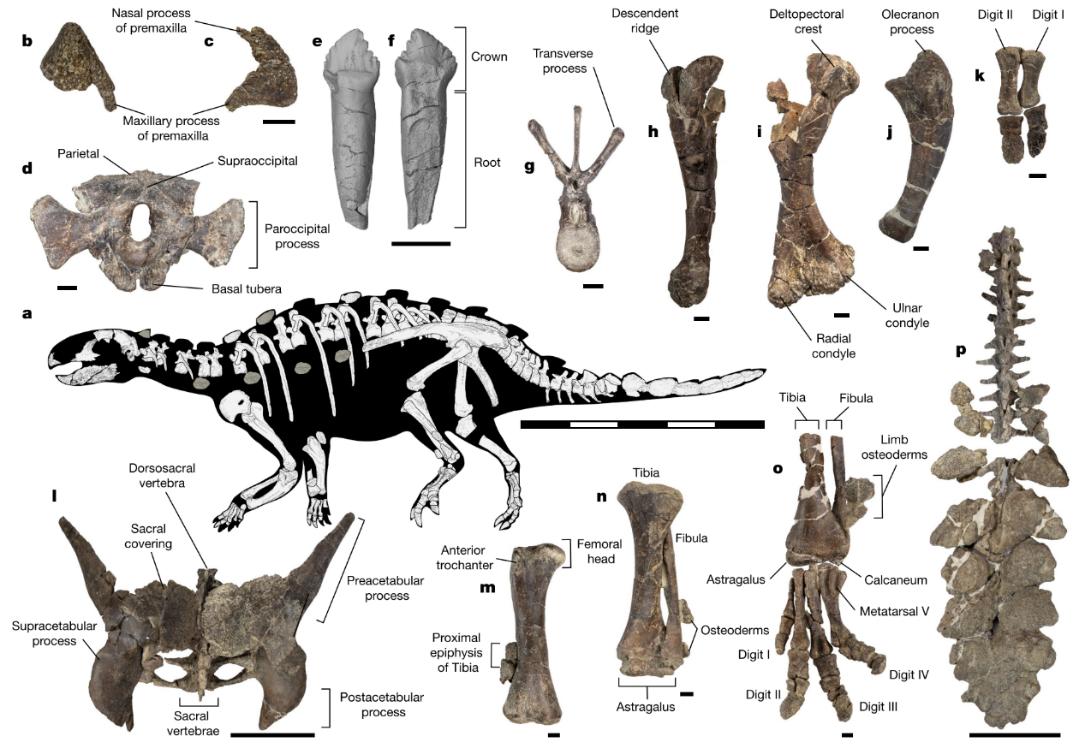 [1] Soto-Acu a, S., Vargas, A.O., Kaluza, J. et al. Bizarre tail weaponry in a transitional ankylosaur from subantarctic Chile. Nature 600, 259–263 (2021).
