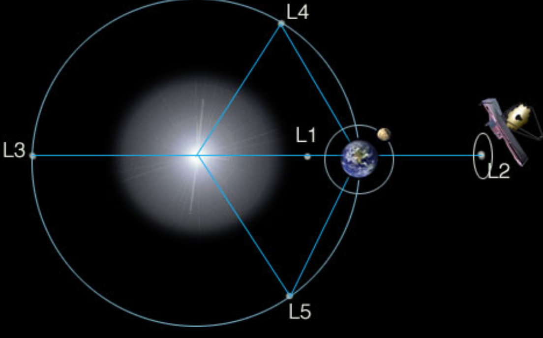 韋伯工作的地方在太空之中,距離地球150萬公里的拉格朗日2點處。之所以選擇這么遠的地方,和韋伯的特殊任務有關。