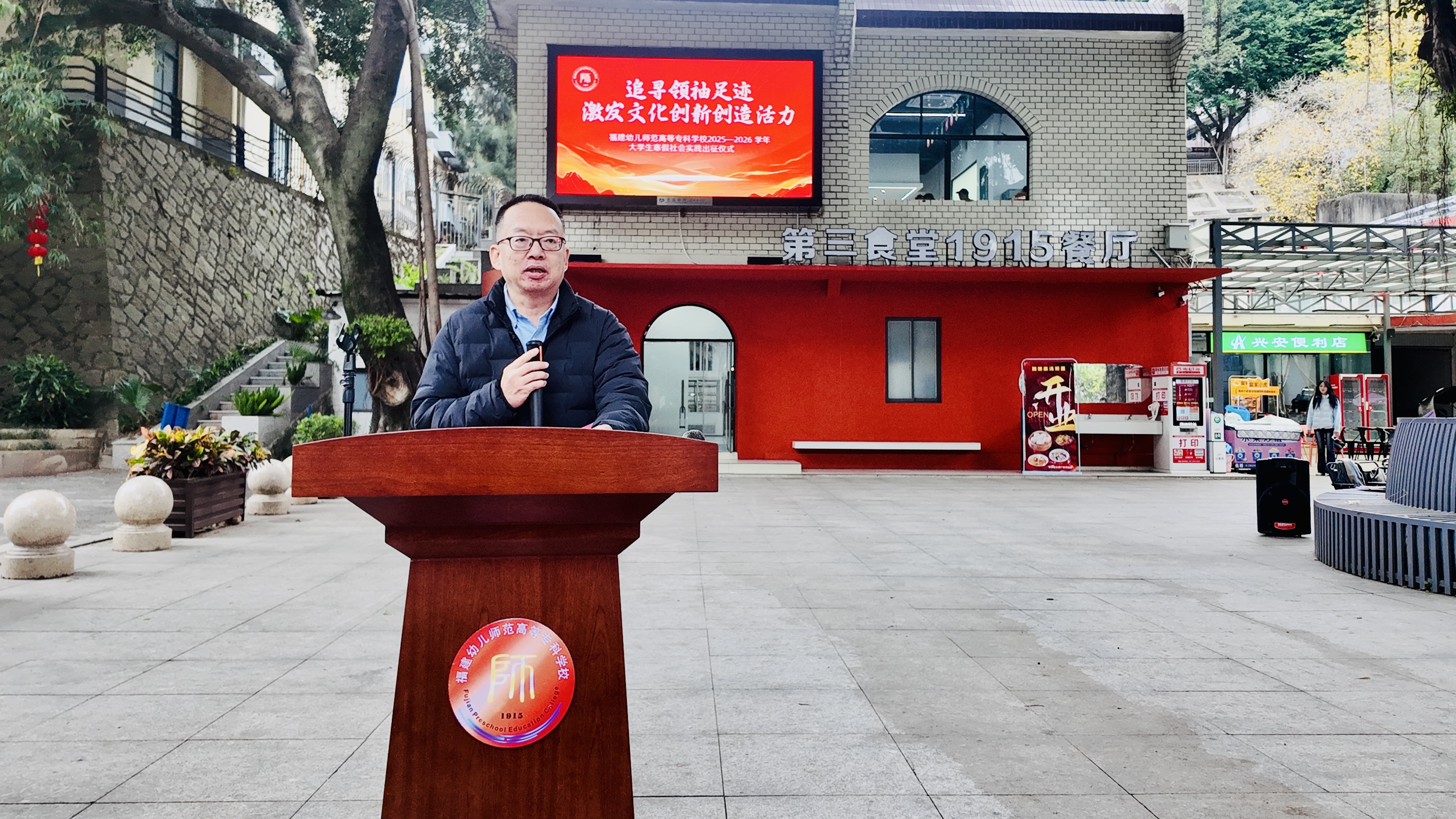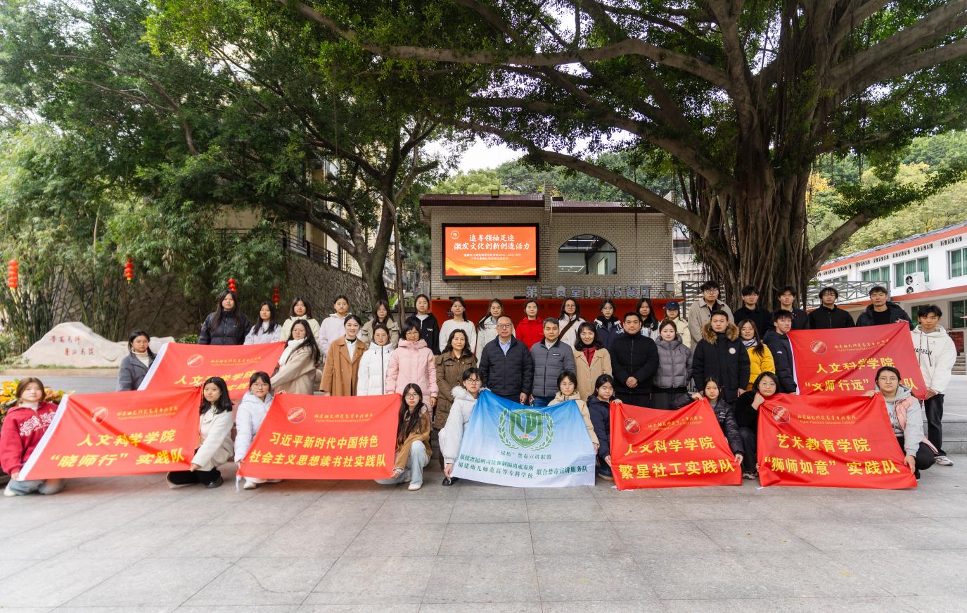 2026年1月21日中午,福建幼兒師范高等??茖W(xué)校在倉山校區(qū)榕樹廣場隆重舉行“追尋領(lǐng)袖足跡,激發(fā)文化創(chuàng)新創(chuàng)造活力”2025-2026學(xué)年大學(xué)生寒假社會實(shí)踐出征儀式。校黨委副書記鄒雄偉出席儀式并作動員講話,校團(tuán)委、馬克思主義學(xué)院負(fù)責(zé)人,各學(xué)院團(tuán)委書記,各實(shí)踐隊師生代表參加活動。出征儀式由校團(tuán)委書記胡華榮主持。