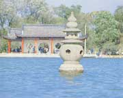西湖以自然山水、文物古跡、寺廟古塔、碑刻造像和新建公園綠地組合而成。有湖不廣,平靜如鏡;山多不高,綿亙蜿蜒;湖山依傍,自然尺度協(xié)調(diào),顯得嫵媚多姿!叭嬖粕揭幻娉恰,是西湖的特點。西湖園林建設(shè)既突出了西湖風(fēng)景的獨特性,又注意了與地方特色相協(xié)調(diào)的整體性。因此,所有新建和擴(kuò)建的園林都用大體量的喬灌木叢組成大小不同、疏落有致的空間,重視配置藝術(shù),選擇色彩豐富的樹木花草作為園林的主景;亭、臺、廊、榭等建筑物以及掇山、園林理水,只作為景區(qū)的點綴。其體型、姿態(tài)、色彩與嫵媚、恬淡、寧靜的西湖自然景觀和寬闊的湖面融成一體,使人工美與自然美有機(jī)地結(jié)合起來,不僅防止追奇獵古、曲折封閉的氣氛,也避免建造林立的大廈和體型龐大的建筑物,取得了明朗、寬廣、自然,園內(nèi)園外渾然一體的效果。