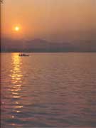 現(xiàn)在的湖區(qū)水面南北長3.3公里,東西寬2.8公里,周長15公里,面積5.5平方公里,平均水深1.5米。孤山是湖上一個大島;蘇堤、白堤把西湖分割為外湖、里湖、小南湖、岳湖和西里湖五個大小不等的水域;三潭印月、湖心亭、阮公墩三個小島鼎立于外湖。西湖南、北、西三面峰巒環(huán)抱,湖區(qū)面積49平方公里。南有吳山、夕照山;北有寶石山、葛嶺;西有三臺山、丁家山;外圍有鳳凰山、玉皇山、南高峰、北高峰、天竺山、靈隱山、玉泉山、棲霞嶺等。群山中分布著虎跑、龍井、玉泉三個名泉和黃龍洞、煙霞洞、云棲、九溪十八澗等曲徑洞壑名勝。
