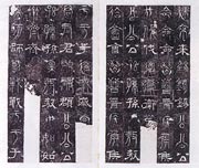 《三體石經(jīng)》刻制于三國(guó)時(shí)期魏正始年間?淌35塊,約十四萬(wàn)七千字。碑高192厘米,寬96厘米。用古文、小篆和隸書三種字體書寫。內(nèi)容為《尚書》、《春秋》、《左傳》三經(jīng)。因其用三種字體書寫,故稱《三體石經(jīng)》;又因它在魏正始年間刻制的,故也稱《正始石經(jīng)》。