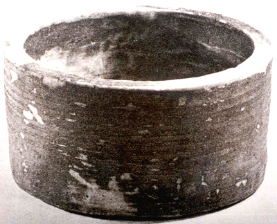 湖北云夢(mèng)睡虎地出土。戰(zhàn)國(guó)。高9.1、口徑18.5厘米,容2000毫升。直壁,平底。外壁有十余道暗弦紋。云夢(mèng)地區(qū)在戰(zhàn)國(guó)晚期屬秦國(guó)的南郡。此陶量的容積約為商鞅銅方升的十倍,當(dāng)為一斗之值。