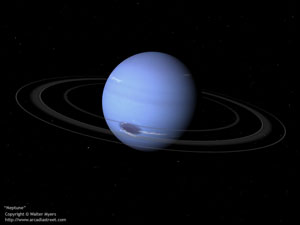 海王星也有光環(huán)。在地球上只能觀察到暗淡模糊的圓弧,而非完整的光環(huán)。但旅行者2號的圖像顯示這些弧完全是由亮塊組成的光環(huán)。其中的一個光環(huán)看上去似乎有奇特的螺旋形結(jié)構(gòu)。同天王星和木星一樣,海王星的光環(huán)十分暗淡,但它們的內(nèi)部結(jié)構(gòu)仍是未知數(shù)。