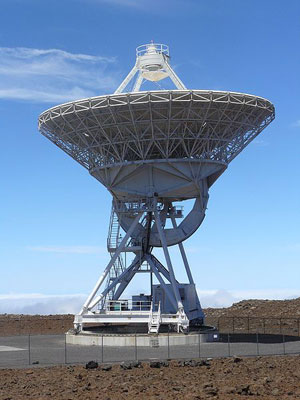備注:甚長基線干涉陣(Very Long Baseline Array,縮寫為VLBA),由10臺口徑為25米的射電望遠鏡組成,跨度從美國東部的維爾京島到西部的夏威夷。這10臺射電望遠鏡天線的運轉由設在新墨西哥州索科洛(Socorro)的工作中心控制。最長基線8600千米,最短基線為200千米,可獲得與美國領土一樣大小的單天線射電望遠鏡的分辨率,比最好的光學望遠鏡的分辨率高2-3個數(shù)量級,觀測銀河系中心時,可以分辨尺度為幾個天文單位的射電源。觀測波長范圍從90厘米到3.5毫米。