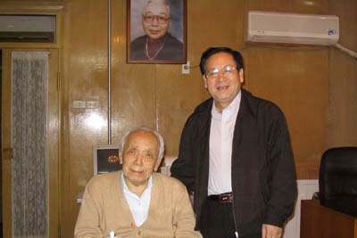陳省身先生正在為青年俊杰提詞。 寧園是南開大學(xué)在80年代中期專門為陳省身先生建造的,以前每年他和夫人鄭士寧女士回中國(guó),都住在這里。“我10歲離開老家浙江嘉興,到天津南開讀書,天津當(dāng)是我的第二故鄉(xiāng),后來僑居美國(guó)50多年,F(xiàn)在回來了,這里自然是我的第二個(gè)家。我最美好的年華在南開度過,她給我留下許多美好的回憶。因此,他最終選擇在南開大學(xué)的寧園定居。前不久,美國(guó)伯克利的國(guó)家數(shù)學(xué)研究所為我舉行了歡送會(huì)。我已經(jīng)老了,數(shù)學(xué)本是年輕人的事業(yè),像我這個(gè)年齡還在前沿做數(shù)學(xué)的,在世界上是沒有的。我的想法很簡(jiǎn)單,就是想在有生之年再為中國(guó)做一些事情。” 而回國(guó)定居的另一層意緒──葉落歸根,是無須提起,永藏心靈深處的。因?yàn)閷?duì)于受過中國(guó)傳統(tǒng)文化熏陶、又在異鄉(xiāng)奮斗了一生的人來說,這“少小離家老大回”的情結(jié),是微分幾何和其他任何數(shù)學(xué)公式都不能解開的。1972年,中美兩國(guó)剛結(jié)束對(duì)峙狀態(tài),陳省身就偕妻女訪問了中國(guó)。后來他在《回國(guó)》一詩中表達(dá)了這種赤子情懷: