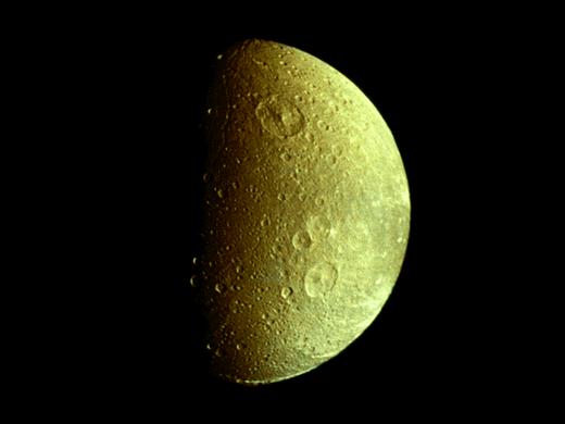 土衛(wèi)四直徑約1120千米,上面有眾多的隕坑。在它的軌道上還有伴星土衛(wèi)四B,它超前土衛(wèi)四60°,位于土衛(wèi)四與土星的引力平衡點(diǎn)上。而在土衛(wèi)四B附近還有顆更小的伴星。