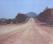 乾陵地上情況大致是:主峰(陵體)四周為神墻,近方形平面,四面正中辟門,各設(shè)門獅一對(duì)。神墻四隅建角樓(角闕)。南神門內(nèi)為獻(xiàn)殿址,門外列石象,自南往北:華表、飛馬、朱雀、石馬(五對(duì))、石人(十對(duì))、碑、華表南即東西乳峰,上置乳闕(相當(dāng)宋陵乳臺(tái));闕南又有雙闕為陵南端入口(相當(dāng)宋陵鵲臺(tái))。這種善于利用地形和運(yùn)用前導(dǎo)空間與建筑物來陪襯主體的手法,正是明清宮殿、陵墓布局的淵源所自。
