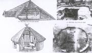 居住區(qū)內(nèi)居住建筑有平面圓形和方形兩種。就建筑風(fēng)格及構(gòu)造方式而言,又可分為半穴居式和地面木架建筑式。