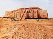 公元前三千紀(jì),幾乎每個城市的主要廟宇都有一個或者幾個山岳臺或者天體臺。殘留至今的烏爾(UR)的月神臺,是夯土的,外貼一層磚,砌著薄薄的凸出體。第一層基底面積為65×45米,高9.75米,有三條大坡道登上第一層,一條垂直于正面,兩條貼著正面。第二層的墓底面積為3723米,高2.50米,以上殘毀,據(jù)估算,總高達約21米。