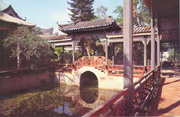 在廣東省番禺縣,它建于清代同治五年(1866),是運(yùn)用幾何圖形組織景物空間的典型。全園分東西兩庭,有橋廊連接。東庭為方塘水庭,所有建筑和組景都同方塘平行,呈方形構(gòu)圖。西庭為八角形水庭,八角形水廳居于八角形水塘的中央,庭內(nèi)橋、廊、小路,都采取同八角形周邊成平行或垂直的方向。園內(nèi)兩庭并列,縱貫軸線,構(gòu)成整齊的幾何形布局,這在中國(guó)古代宅園中比較罕見(jiàn)。