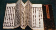 經(jīng)折裝就是將“印頁(yè)”一張一張地裱帖成長(zhǎng)條后,再反復(fù)印折迭,前后用厚紙作封面的一種書籍裝幀形式。這種裝幀形式多用于佛經(jīng)寫印本。起源于唐代,一直流行至今。