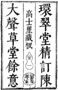 徽州民間印刷徽州一帶歷來(lái)是紙、墨、筆、硯文房四寶的產(chǎn)地。還以多出刻版高手而著名,進(jìn)入明代,這里的印刷業(yè)也有所發(fā)展。由于其得天獨(dú)厚的社會(huì)條件,這里的刻本以插圖,字體精美而稱著。特別是汪氏環(huán)翠堂刻本,可稱徽州的代表。 |