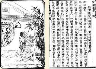 清代還創(chuàng)造了很多名著小說(shuō),如《紅樓夢(mèng)》、《聊齋志異》、《儒林外史》、《鏡花緣》等,這些小說(shuō)刻印時(shí)都附有插圖。道光年間的王希廉評(píng)本《紅樓夢(mèng)》插圖六十四幅,人物形象,花草禽鳥(niǎo),筆畫(huà)比較簡(jiǎn)潔,神態(tài)自然。