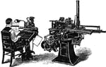 立諾自動排鑄機為英國根塔拉爾(一譯梅根太勒,Cttmar Mergenthaler)發(fā)明于1886年。其 排鑄方式與西文打字頗似,即按照原稿文字,按動排鑄機上的字鍵,排成銅模一行,則鑄出 鉛字一排(一行),故其又稱作"條形排鑄機"。這種條形排鑄機的優(yōu)點是以一排鉛字為單位