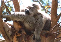 樹(shù)熊。如中國(guó)的熊貓一樣,樹(shù)熊是澳大利亞的國(guó)寶。世界上只有澳大利亞有樹(shù)熊。顧名思義,樹(shù)熊生活在樹(shù)上,吃在樹(shù)上。我在國(guó)立公園里拍照時(shí),幾只樹(shù)熊臥在樹(shù)上,任游人如何逗它,連眼都懶得睜開(kāi)。我拍的幾張樹(shù)熊照,都是懶洋洋地趴在樹(shù)杈上。比起來(lái),樹(shù)熊不如熊貓活潑可愛(ài)。