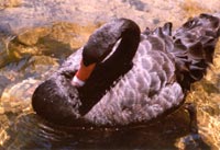 紅嘴黑天鵝,據(jù)說(shuō)是澳大利亞特產(chǎn)。常游于湖中,覓食時(shí)鉆入水中,屁股朝天,好半天也不抬頭,“潛泳”很有功底。中午了,太陽(yáng)直曬,一只紅嘴黑天鵝游到了岸邊樹(shù)蔭下休息。我們乘機(jī)接近它,拍下了美麗的特寫(xiě)鏡頭:黑黝黝的羽毛顯得高貴,配上鮮紅的長(zhǎng)嘴,真可謂高貴而華麗。