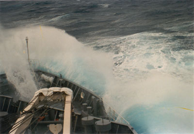 巨浪把海水卷進前甲板